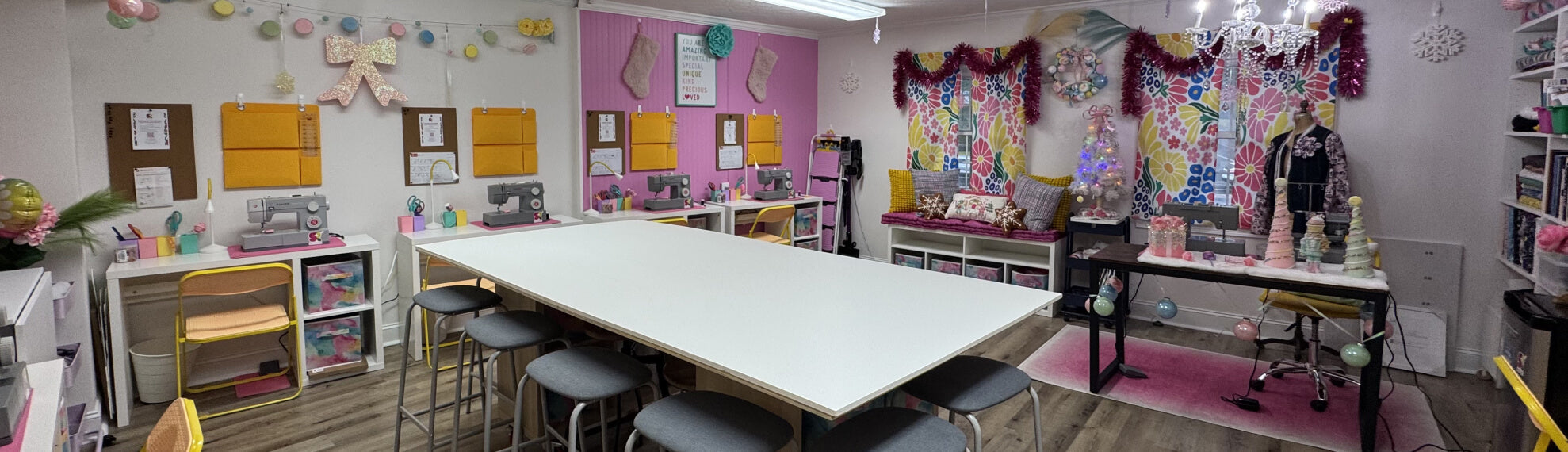 Yes! 🎉 We love to celebrate with creative sewing parties, Sip & Sew events, or private sewing playdates. Contact us for details.
