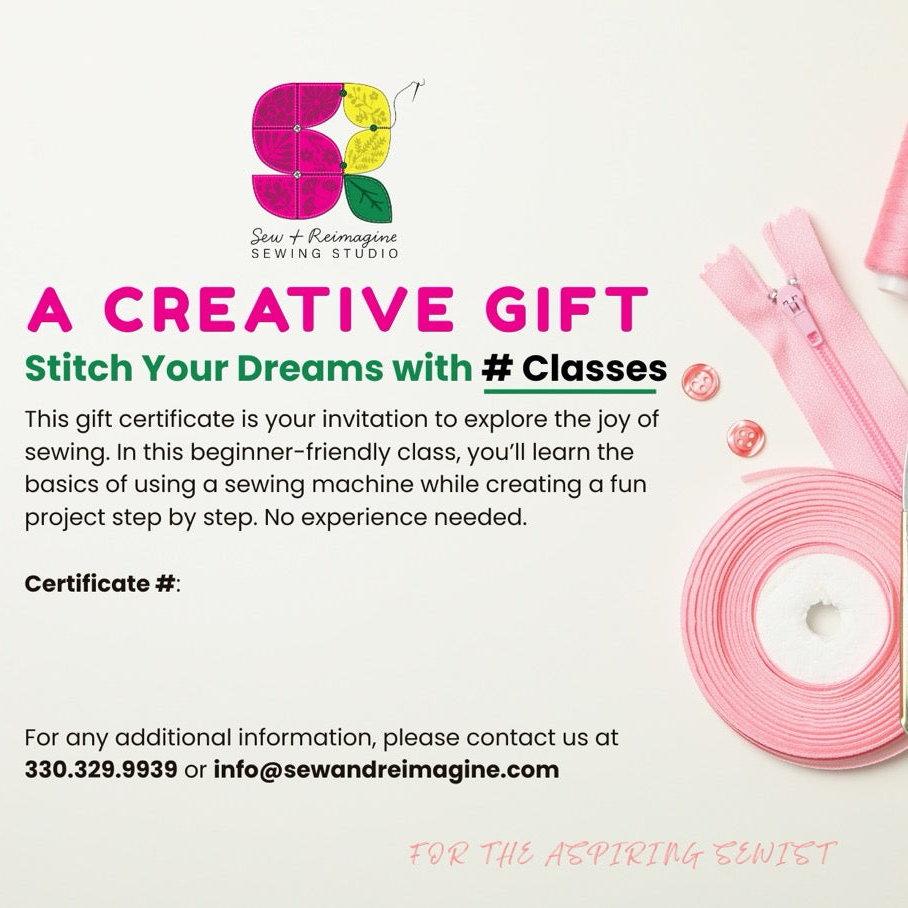 This gift certificate is your invitation to explore the joy of sewing. In a beginner-friendly class, you’ll learn the basics of using a sewing machine while creating a fun project step by step — no experience needed.